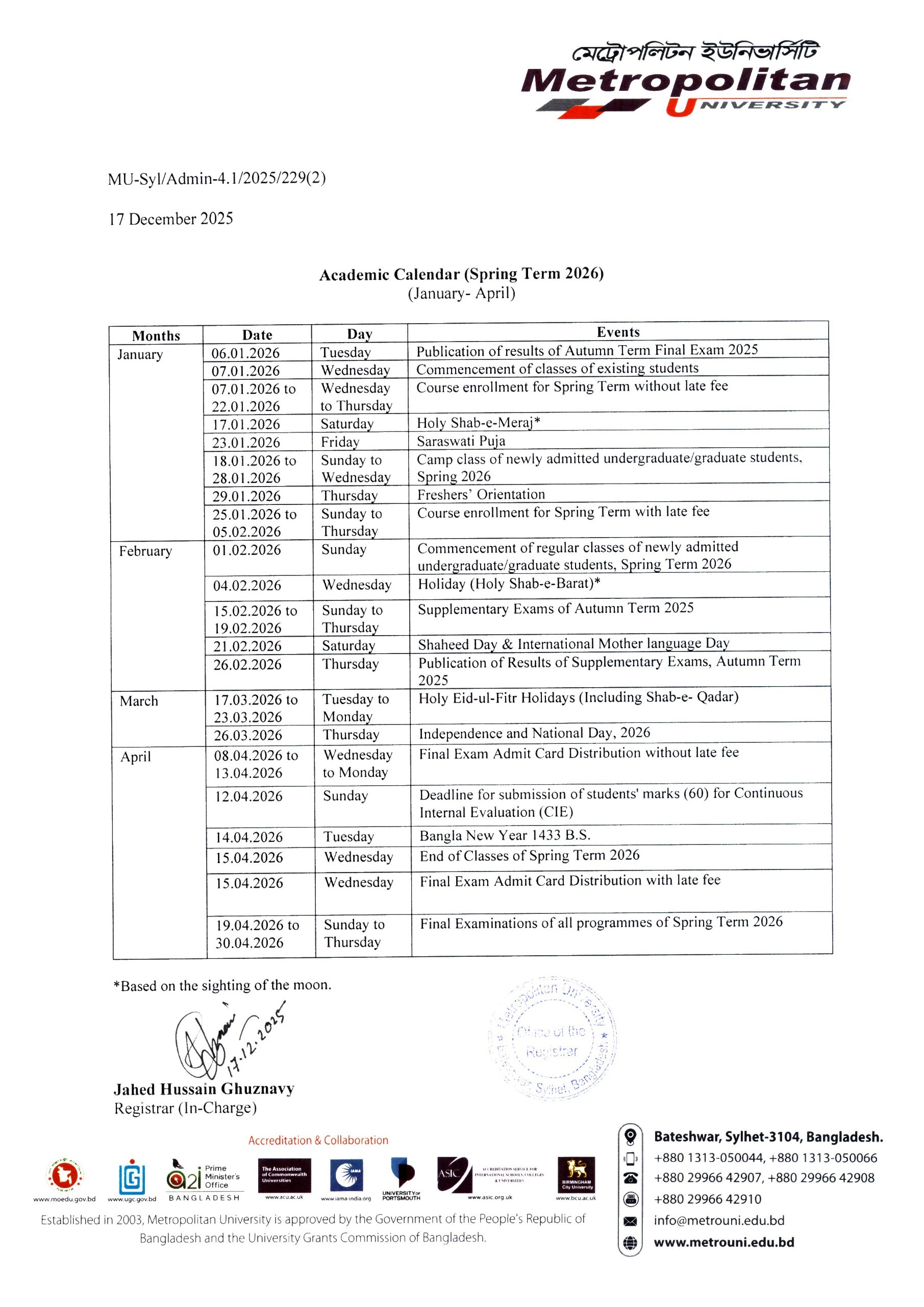 Download Academic Calendar (Spring-2026)